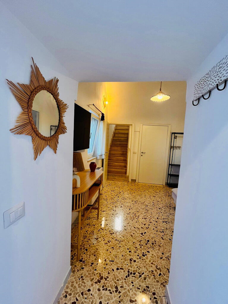 Composto da due camere da letto, un ampio soggiorno con divano letto, cucina completamente attrezzata e una terrazza privata panoramica, offre ambienti raffinati e funzionali.