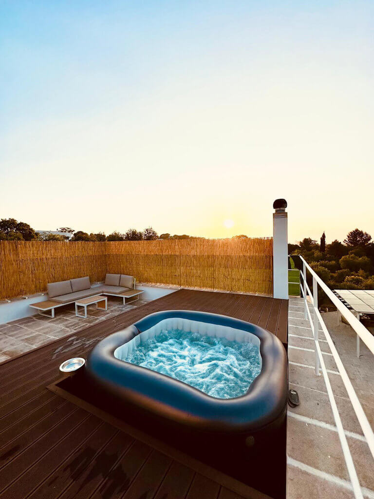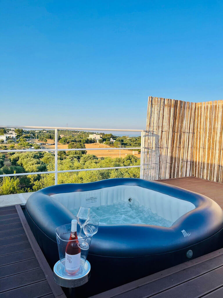 La vasca idromassaggio esclusiva, incastonata in uno spazio dedicato al relax, completa l’esperienza con un tocco di autentico benessere.