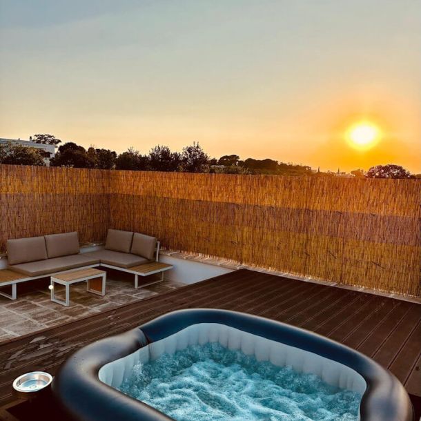 Luminoso e confortevole, il Jacuzzi Apartment è pensato per accogliere famiglie o coppie di amici che desiderano condividere il comfort di una vera casa pugliese.